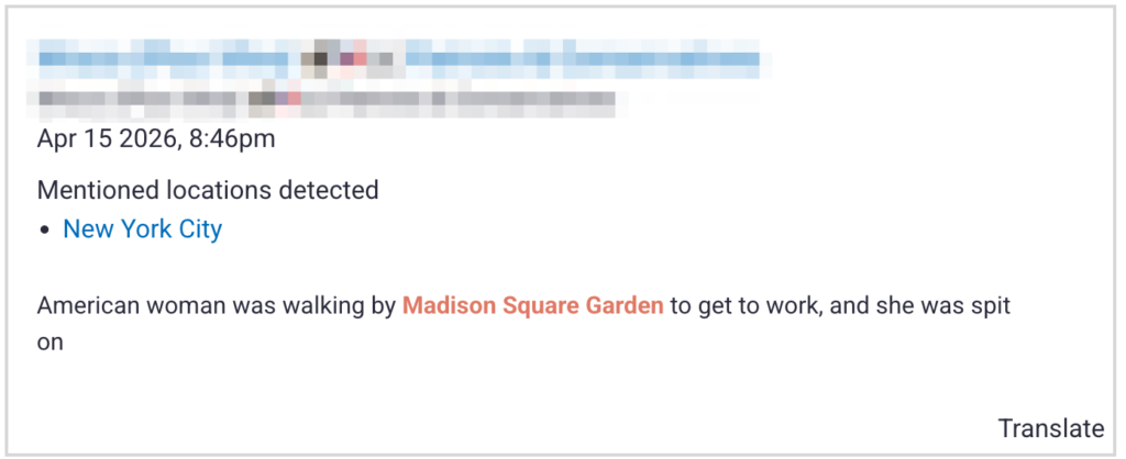 Security and intelligence practitioners often spend valuable time researching details about an area of interest, such as key landmarks, street names, and businesses. These are the types of details commonly mentioned in social media posts.