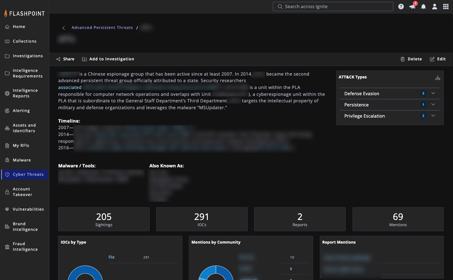 Flashpoint Ignite is our platform where analysts can pivot across PSC-derived datasets, investigate threats, and collaborate across teams. PSC enables Ignite to deliver unparalleled depth, breadth, and speed of data from highly relevant sources, enriched by human insights. It ensures you have full context and can operationalize intelligence into action.